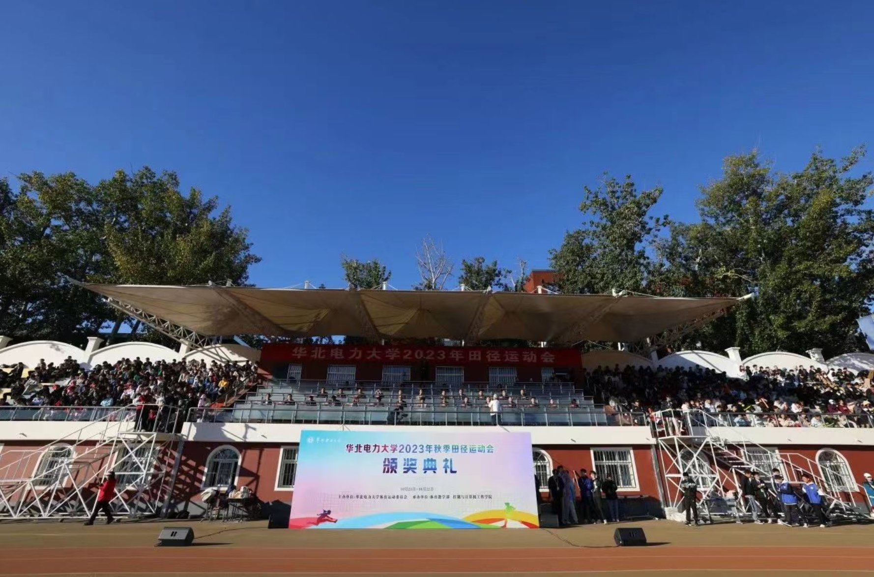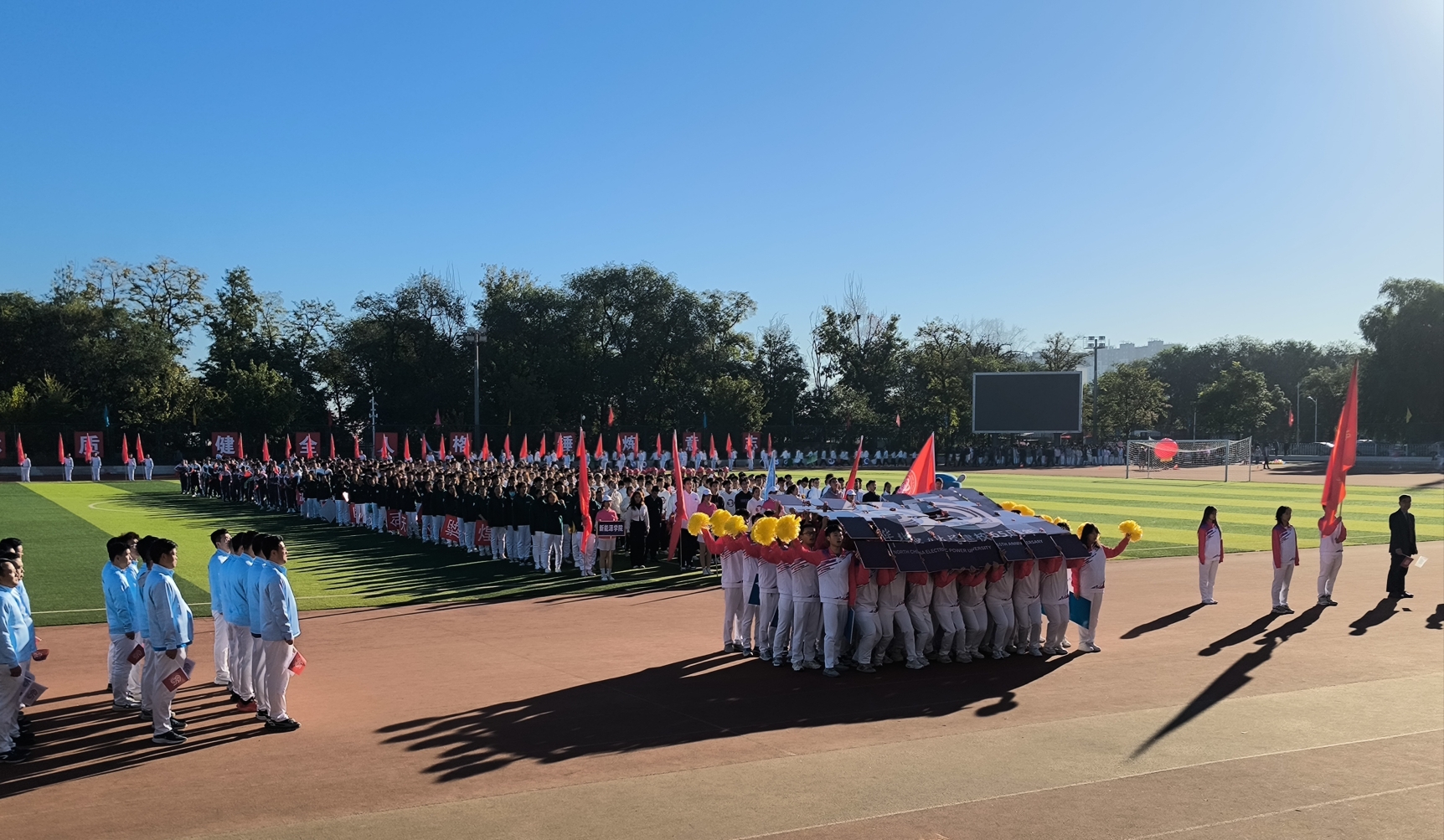 青春的脚步,快如金秋之风;绽放的笑容,灿若春晓之花,10月21日上午,秋风送爽,丹桂飘香。朵朵白云衬托湛湛秋空。操场上彩旗招展,标语飞扬。华北电力大学2023年田径运动会炫彩开幕。刘云鹏副校长主持开幕式仪式。