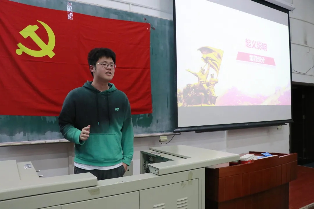 分享的同时,第六组同学也提出了“起义地点为何会在南京”等相关问题,引导大家对其进行更加深刻和辩证的思考,学会以史为鉴,从中总结经验教训,汲取力量和智慧,同时感受学习先辈们的革命故事与精神,坚定理想信念,鼓舞斗志,明确方向。